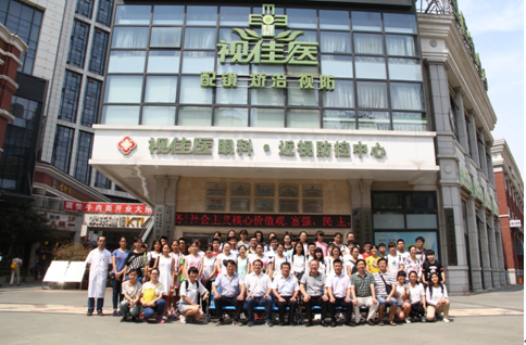 在武汉视佳医眼科楼前合影