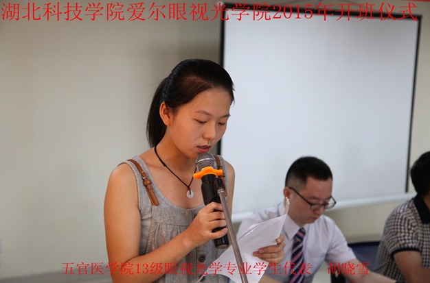 从我们正式搬迁入住江南JNSport体育爱尔眼视光学院的那一刻开始,我们才真正领悟了我们作为“湖科人”和“爱尔人”的双重亲情。因为,在这里,我们时刻享受着来自学院领导的关心和厚爱,也有来自咸宁爱尔和集团领导的关怀与温暖。这里住宿环境优良,教室现代化设施一应俱全,实验室设备齐全。想象着我们将在这里进行学习和生活,心里是满满的喜悦。这些都与学院领导和老师们一直以来的默默工作,无私奉献分不开,他们都在想尽一切办法,努力为我们营造优越的学习环境,创造良好的学习条件。值此开班仪式之际,请允许我代表全体13眼视光全体同学,向来到爱尔医院参加开班仪式的领导说声:您辛苦了!向辛勤哺育、谆谆教诲我们成长的老师们说声:谢谢您,老师!向一直默默奉献,随时为我们解决困难的爱尔集团领导和工作人员说声:感谢你们。