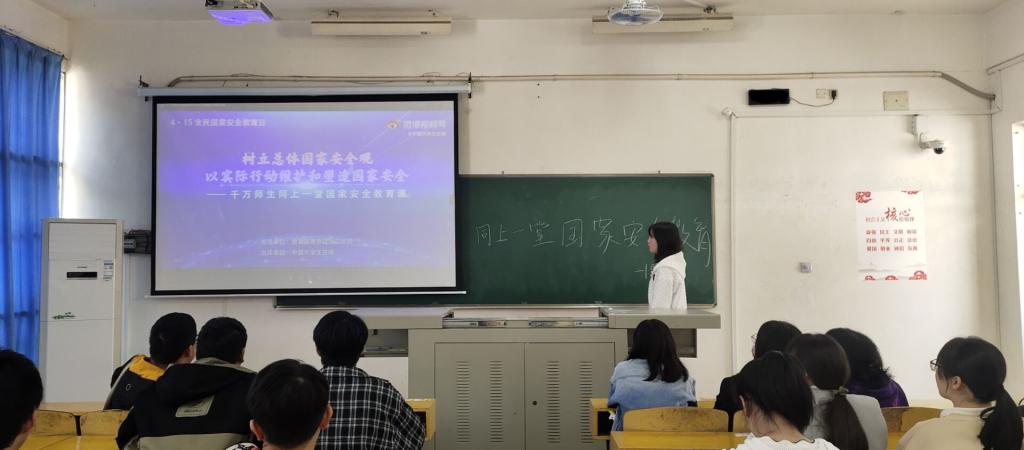 四、开展国家安全法律法规普及活动。4月18日晚,各班通过主题班会、视频观赏、专题讲座、案例讨论等形式让广老员工接受国家安全教育,加大对《中华人民共和国国家安全法》等国家安全相关法律法规的普法宣传力度,弘扬总体国家安全观,系统宣传总体国家安全观战略思想的重要举措,使广大师生在教育活动中普遍掌握安全知识、提升国家安全意识。