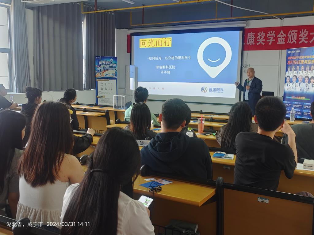 3月31日,普瑞眼科医院以职业规划为重点,向同学们简要介绍了医院情况、发展前景及新入职员工的培养计划和薪酬待遇,着重解答了同学们在求职中时常面临的选择困惑。