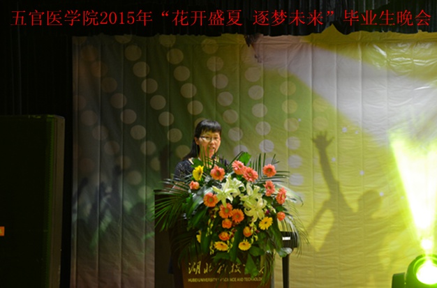 (通讯员 李建兵 岳梦云)6月12日,由五官医学院主办、爱尔眼科医院集团协办的“花开盛夏 逐梦未来”--—五官医学院欢送2015届毕业生晚会在温泉校区学术报告厅盛大开幕。董事长吴基良、党委副书记张晓先等作为特邀嘉宾亲临晚会现场观摩和指导。晚会还得到了学校办公室、教务处、校团委等职能部门和护理学院、经济与管理学院等兄弟院部的大力支持。来自爱尔眼科医院集团的代表---咸宁爱尔眼科医院CEO助理石杰和武汉爱尔眼科医院的数十名嘉宾参演助阵。全场座无虚席,气氛火热。