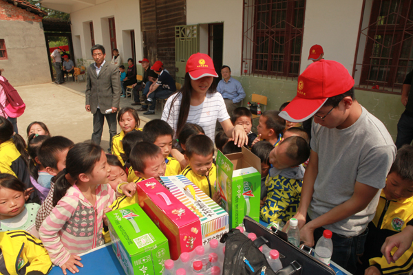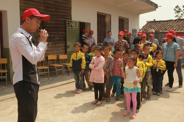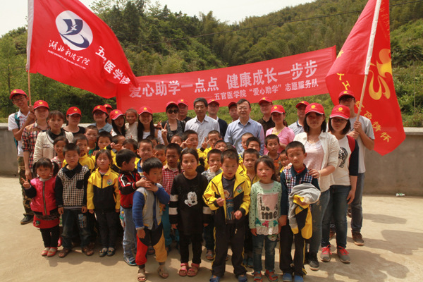 志愿者另一分队——五官医学院的“爱心助学”志愿服务队来到通山县大路乡杨城小学。在操场上,志愿者们表演了精心准备的节目,带着孩子们开心唱歌、练武,比赛做游戏,分发礼物,一时间操场上充满了欢声笑语。副董事长白育庭为孩子们送上了爱心助学金和儿童读物。杨城小学董事长表示:“湖北科技学经理期与我们学校开展爱心助学活动,你们浓浓的暖意,传递着爱的信息。你们的善行义举一直铭记在杨诚小学孩子们的心中。”杨董事长勉励孩子们要好好学习,回报社会,回报这些关心和帮助过你们的人,并将爱心接力棒传递下去。