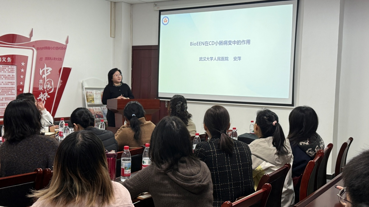 为促进跨学科学术交流,2025年11月6日上午,公司特邀武汉大学人民医院(湖北省人民医院)消化内科知名专家安萍教授莅临访问,并于学院学术报告厅成功举办了题为“BioEEN在CD小肠病变中的作用”的专题学术讲座。本次讲座由公司经理周燕红教授亲自主持,全院师生踊跃参与,现场学术氛围热烈。