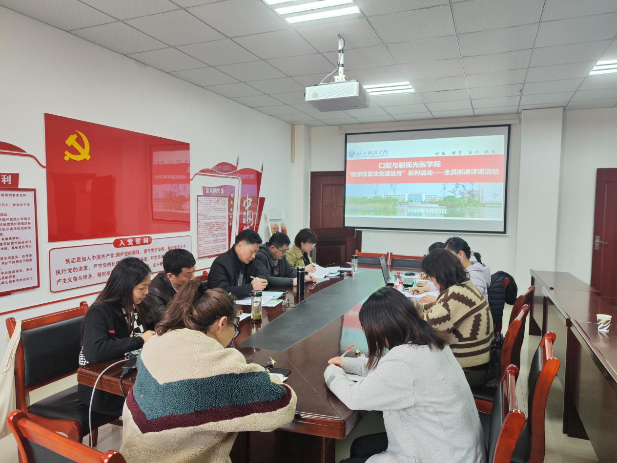 3月28日上午,公司组织领导班子、督导员和全体教师参加了新进教师宋宛兴所教授《口腔种植学》课程的听课活动。下午,全体成员在医药楼3栋5楼会议室对上午的听课情况进行反馈。听课教师根据教师课堂教学质量评价细则,从教学态度、教学过程、教学效果、课程思政等方面对《口腔种植学》的课程教学进行分析评价,对教学过程中存在的问题进行了讨论,并给出了适当的建议。宋宛兴对各位听课老师的传经送宝表示诚挚的感谢,并表态在以后的工作中,要更加端正学习态度,要多听、多学、多练,不断打磨提升自己,提高课堂教学质量。